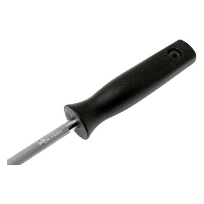 Aanzetstaal voor uitzonderlijk slijpen van uw messen. Zelfs messen van hoge kwaliteit, zoals die van WÜSTHOF, worden door het gebruik geleidelijk bot: ter compensatie moet regelmatig een aanzetstaal worden gebruikt. Een paar halen met beide kanten van het mes over het slijpstaal helpen je om de scherpte van een goed lemmet te behouden.