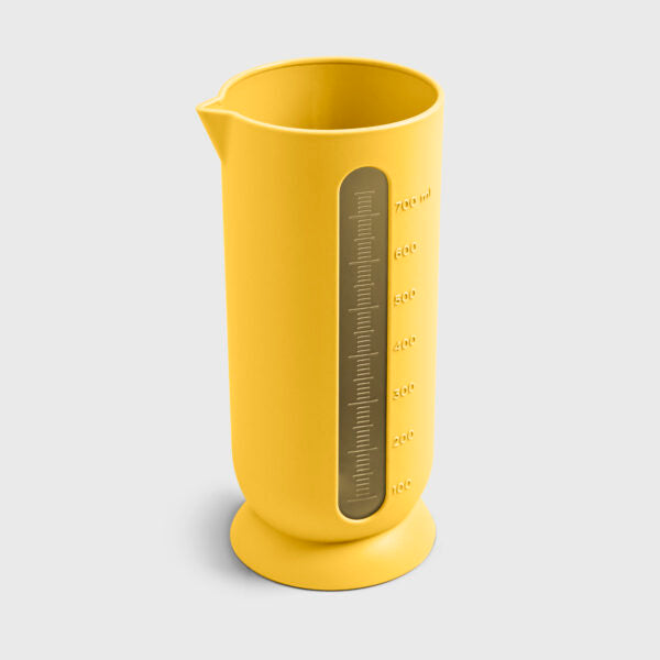 Wie heeft de leiding in de keuken? De balans. Het in één oogopslag vaststellen van de doses is de eerste stap om goed werk te leveren. De juiste hoeveelheid schijnt door het maatvenster van de cilinder, die een dunne tuit heeft om altijd “net genoeg” te zijn.