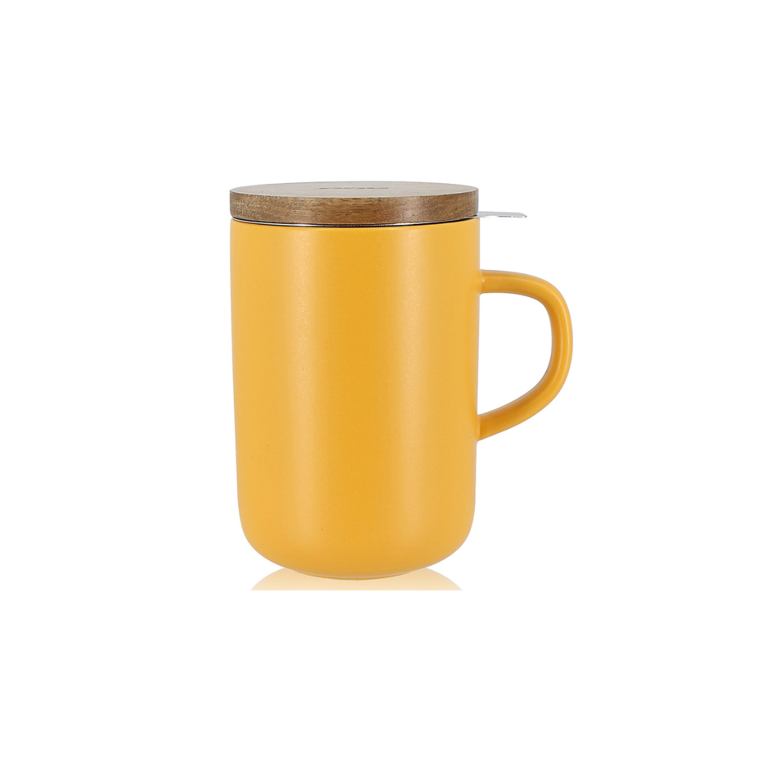 Theetas in grès, met genereuze inhoud en ruime zeef. Noors design die uitnodigt tot relaxen. Natuurlijke uitstraling door het deksel in acacia.